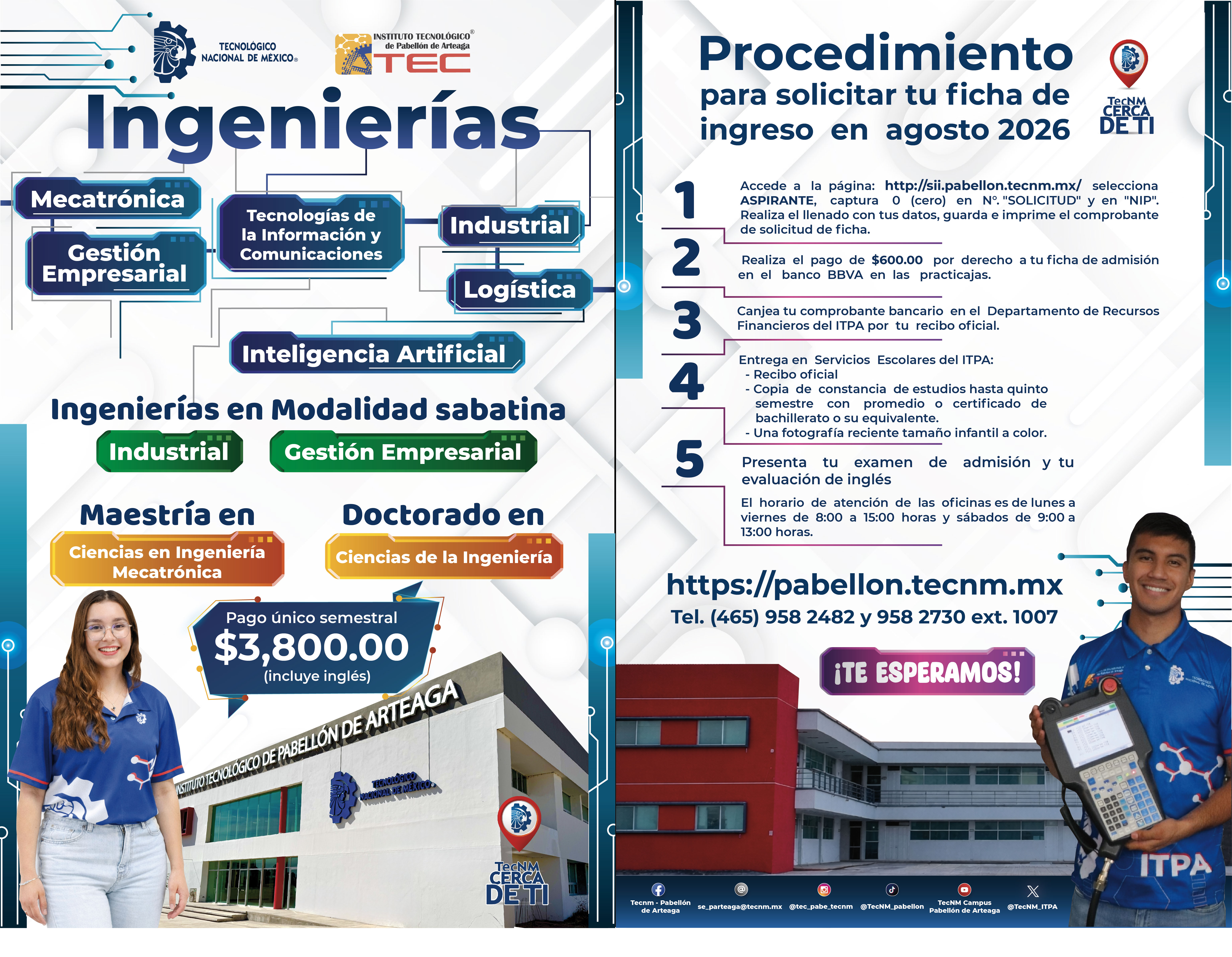 @tecnm_pabellondearteaga 🎉 ¡𝙏𝙚𝙣𝙚𝙢𝙤𝙨 𝙜𝙧𝙖𝙣𝙙𝙚𝙨 𝙣𝙤𝙩𝙞𝙘𝙞𝙖𝙨! 🎉 El Tecnm - Pabellón de Arteaga amplía su oferta educativa con la 𝙄𝙣𝙜𝙚𝙣𝙞𝙚𝙧í𝙖 𝙚𝙣 𝙄𝙣𝙩𝙚𝙡𝙞𝙜𝙚𝙣𝙘𝙞𝙖 𝘼𝙧𝙩𝙞𝙛𝙞𝙘𝙞𝙖𝙡, un programa diseñado para quienes desean liderar en el mundo de la tecnología y la innovación. Además, contamos con: 📘 𝙄𝙣𝙜𝙚𝙣𝙞𝙚𝙧í𝙖 𝙚𝙣 𝙂𝙚𝙨𝙩𝙞𝙤́𝙣 𝙀𝙢𝙥𝙧𝙚𝙨𝙖𝙧𝙞𝙖𝙡. 🤖 𝙄𝙣𝙜𝙚𝙣𝙞𝙚𝙧í𝙖 𝙈𝙚𝙘𝙖𝙩𝙧𝙤́𝙣𝙞𝙘𝙖. 🚛 𝗜𝗻𝗴𝗲𝗻𝗶𝗲𝗿í𝗮 𝗟𝗼𝗴í𝘀𝘁𝗶𝗰𝗮. 💻 𝙏𝙚𝙘𝙣𝙤𝙡𝙤𝙜í𝙖𝙨 𝙙𝙚 𝙡𝙖 𝙄𝙣𝙛𝙤𝙧𝙢𝙖𝙘𝙞𝙤́𝙣 𝙮 𝘾𝙤𝙢𝙪𝙣𝙞𝙘𝙖𝙘𝙞𝙤𝙣𝙚𝙨. 🏭 𝙄𝙣𝙜𝙚𝙣𝙞𝙚𝙧í𝙖 𝙄𝙣𝙙𝙪𝙨𝙩𝙧𝙞𝙖𝙡. 📅 Inscripciones abiertas para el 𝘀𝗲𝗺𝗲𝘀𝘁𝗿𝗲 𝗮𝗴𝗼𝘀𝘁𝗼-𝗱𝗶𝗰𝗶𝗲𝗺𝗯𝗿𝗲 𝟮𝟬𝟮𝟱. ¡Sé parte de esta gran familia y construye el futuro con nosotros! #OrgulloITPA#Inscripciones2025♬ sonido original - Tecnm- IT.Pabellon de Arteaga